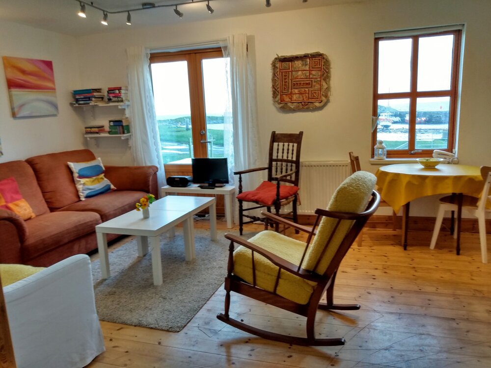 this lovely apartment is ideal for people who plan to cycle or walk on the island as the beach bay we are situated on is within a couple of minutes walk from the co-op (the main food shop on the island) and is within five minutes walk of the ferry.. There is ample parking for if you are driving to here