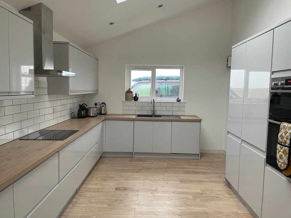 The Haven offers a modern, spacious open plan living, dining, kitchen area, a cosy lounge with a wood burning stove, 4 comfortable bedrooms (3 kingsize beds, 1 single and a bunkbed), 2 bathrooms and a large garden with decking and picnic table