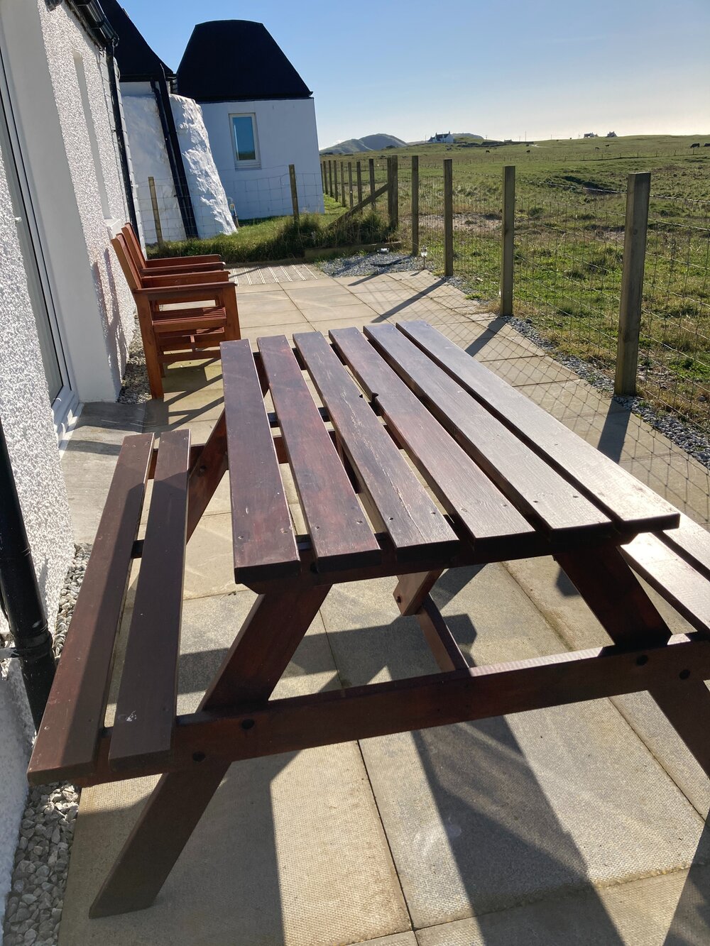 The outdoor seating area on the patio at the back of the cottage is the perfect place to enjoy the breath-taking Kilkenneth sunsets at the end your day.